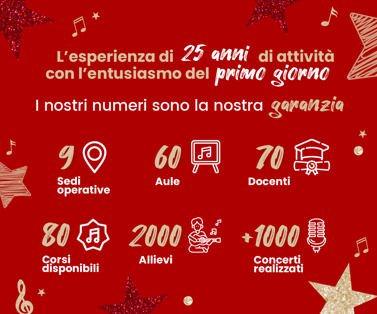 - Un TEAM formato da oltre SETTANTA DOCENTI, professionisti nel campo musicale tra i migliori a livello nazionale ed internazionale in grado di proporre oltre OTTANTA diversi tipi di corsi