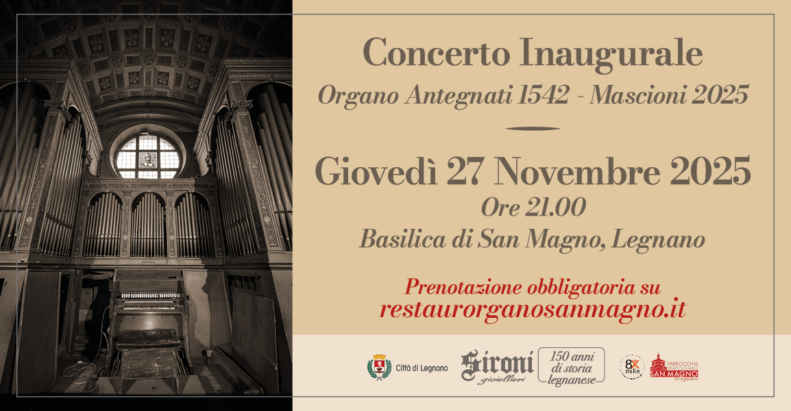 Un cast di altissimo livello e un programma musicale di grande fascino accompagneranno l’attesissimo concerto per l’inaugurazione dell’organo restaurato della Basilica di San Magno a Legnano previsto per giovedì 27 novembre alle ore 21.00. Un appuntamento che si preannuncia come uno degli eventi musicali più significativi dell’anno, non solo per la città ma per l’intero panorama musicale nazionale.